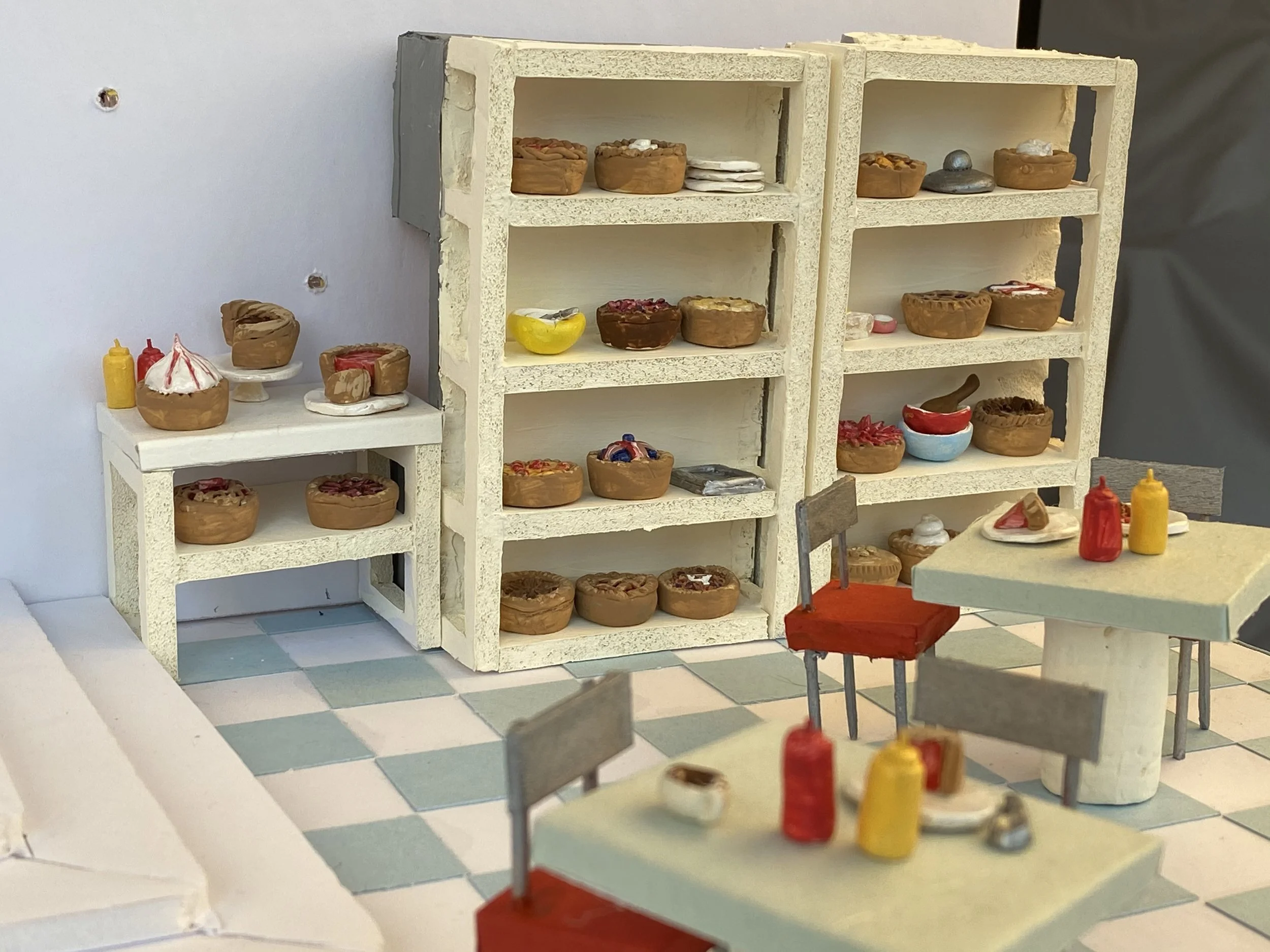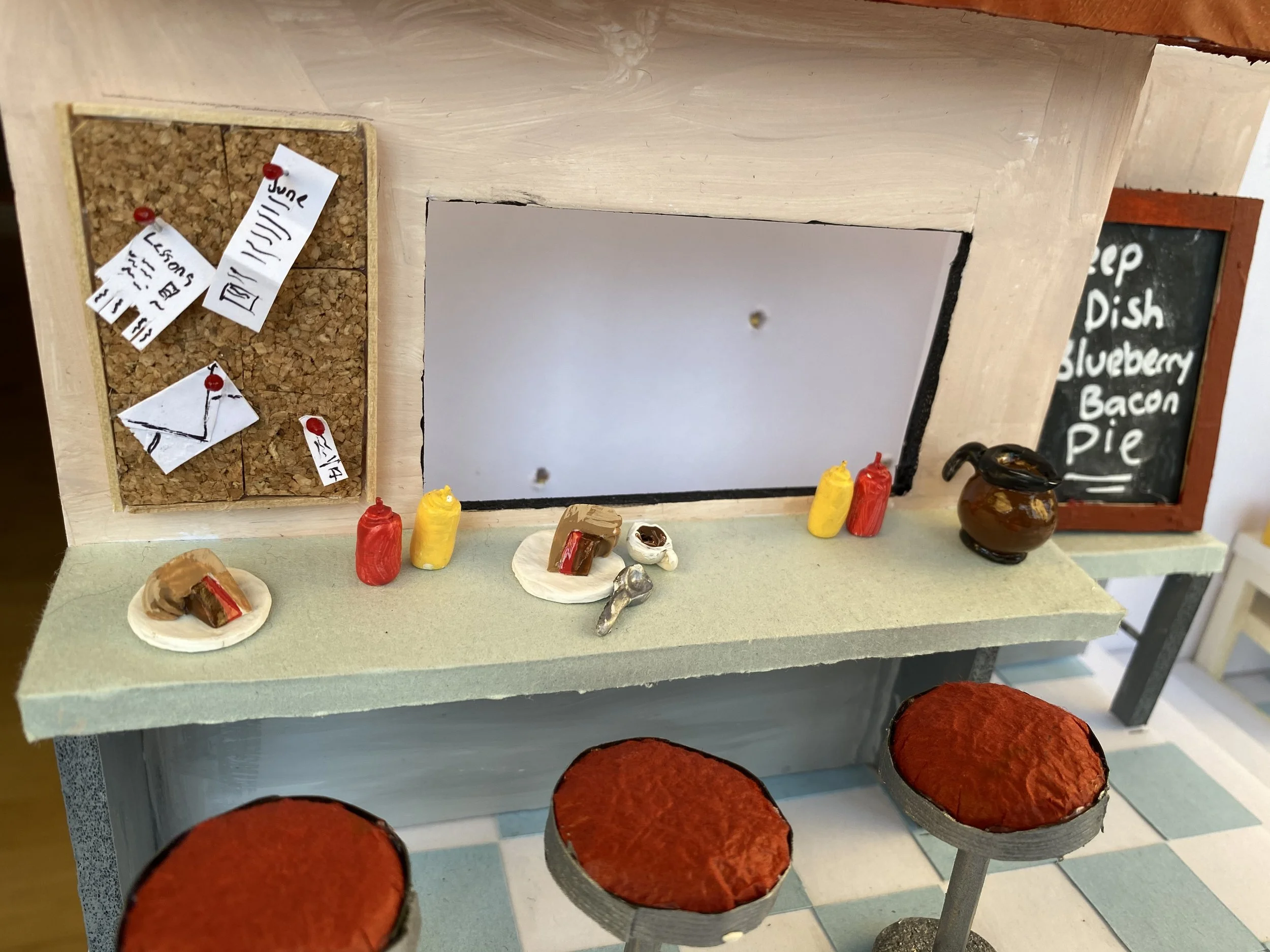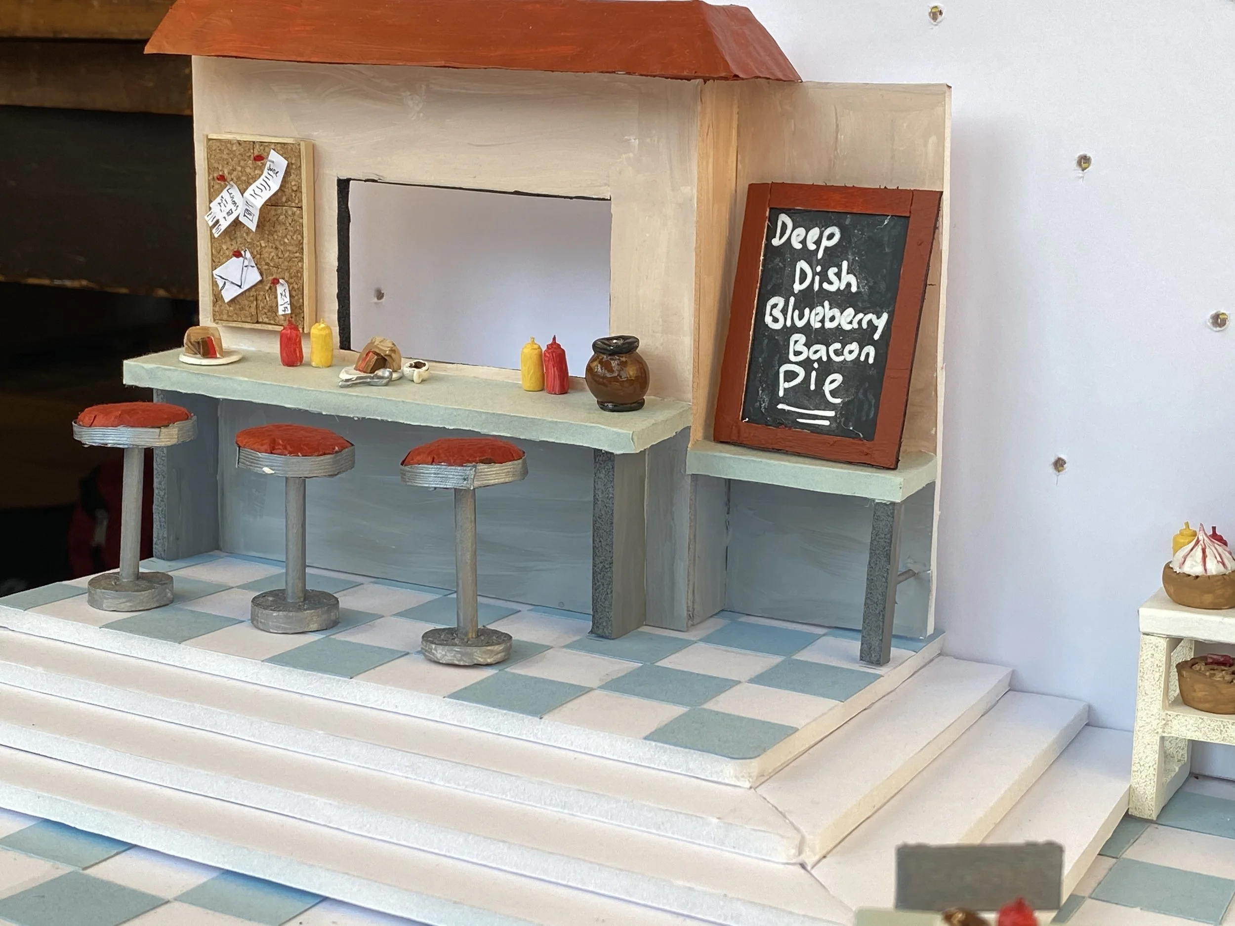 Focusing far more on model making than design, my set was a near identical copy of the Waitress the Musical’s set on Broadway with only minor changes. Nevertheless, I thoroughly enjoyed the process and this assignment will always hold a place in my journey as my first maquette. Though my highschool drama teacher assured me that I did not need to create a miniature of every prop used in the show, I have not learned my lesson and have heard the same thing from several set design teachers since.